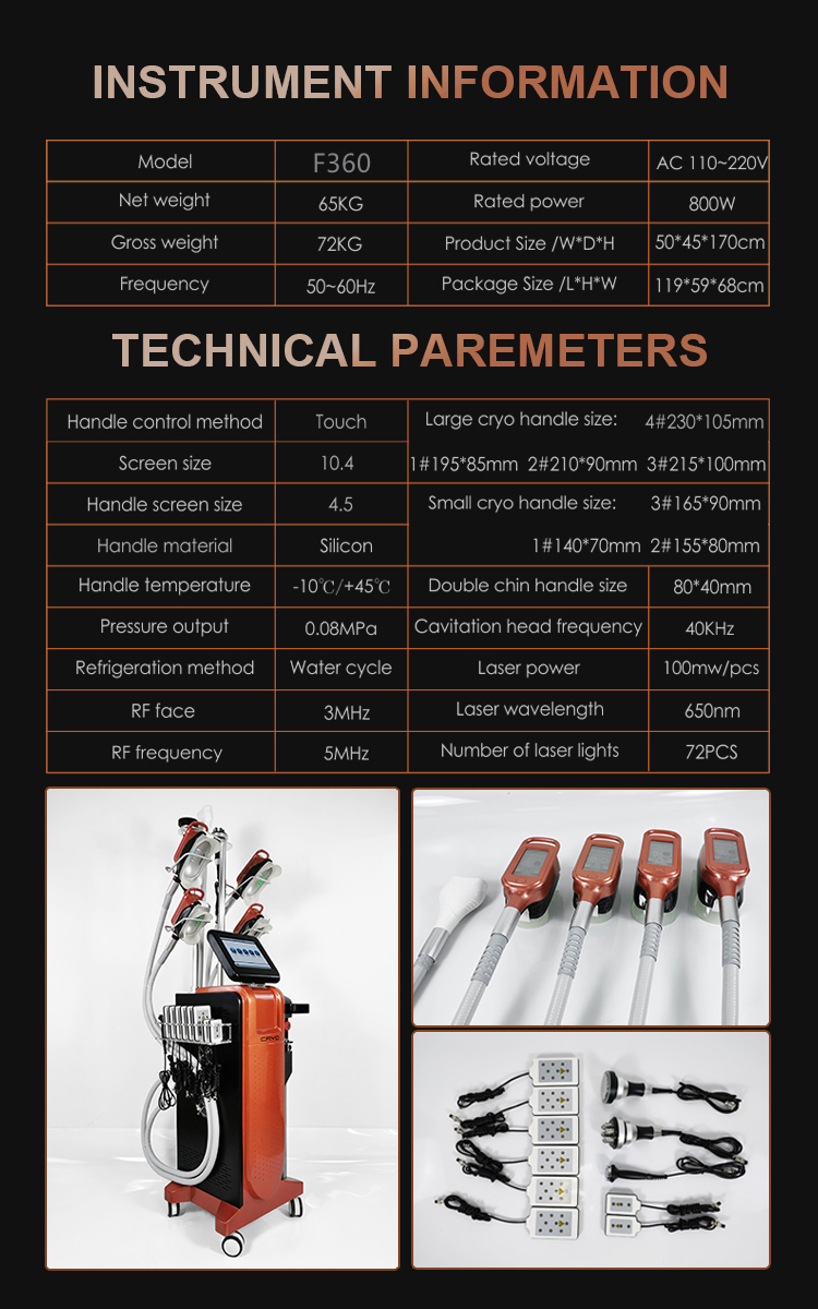 Ultrasound cavitation cryotherapy cryo facial lipo laser cryolipolisis physiotherapy multifunction cryolipolysis 360 ems machine Model: F360